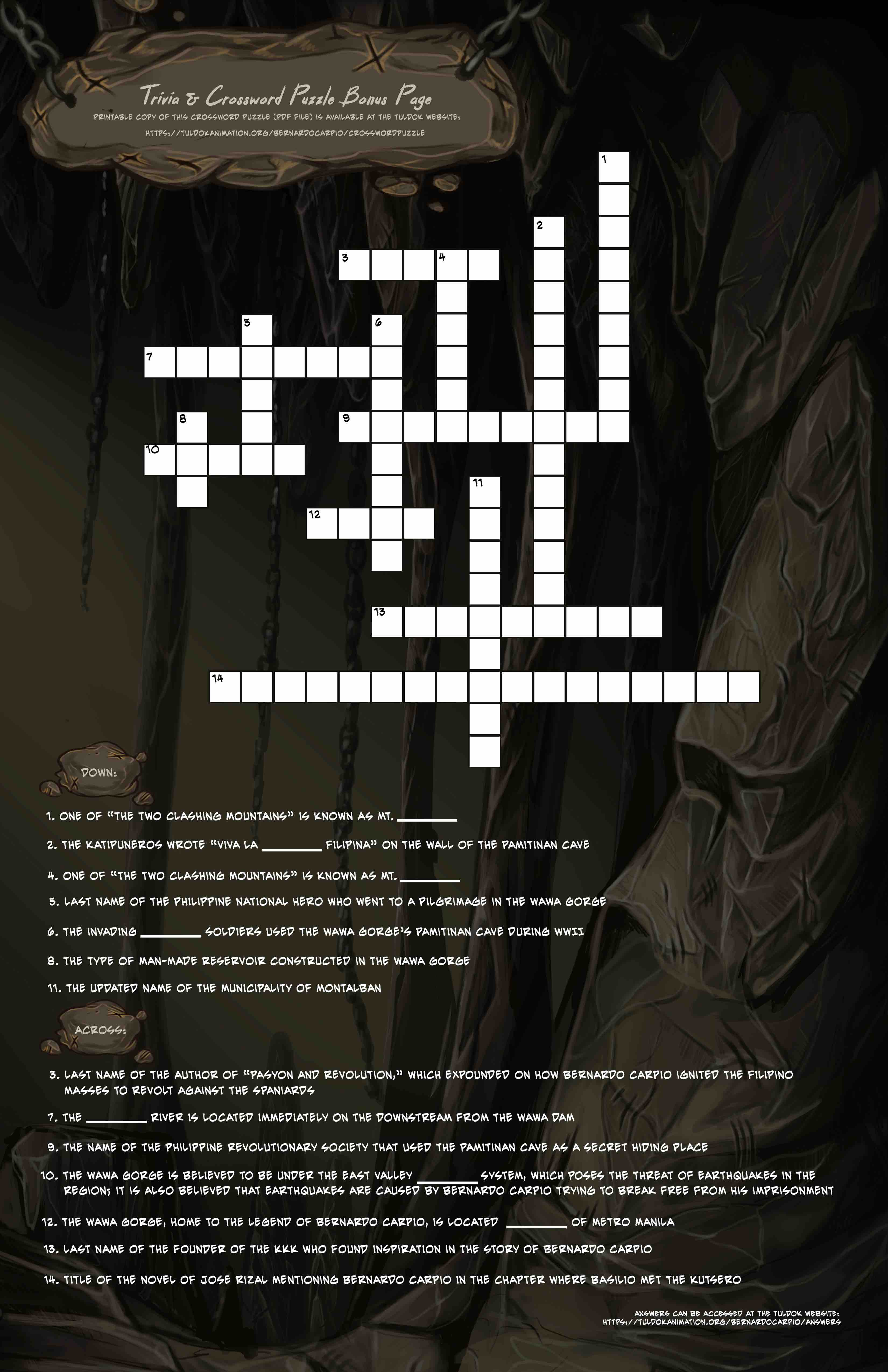 In living up to its being an edutainment package, Tuldok's Bernardo Carpio Project crafted this crossword puzzle to serve as additional trivia information about the Bernardo Carpio lore (aside from the trivia offerings provided in the Bernardo Carpio AR mobile app).